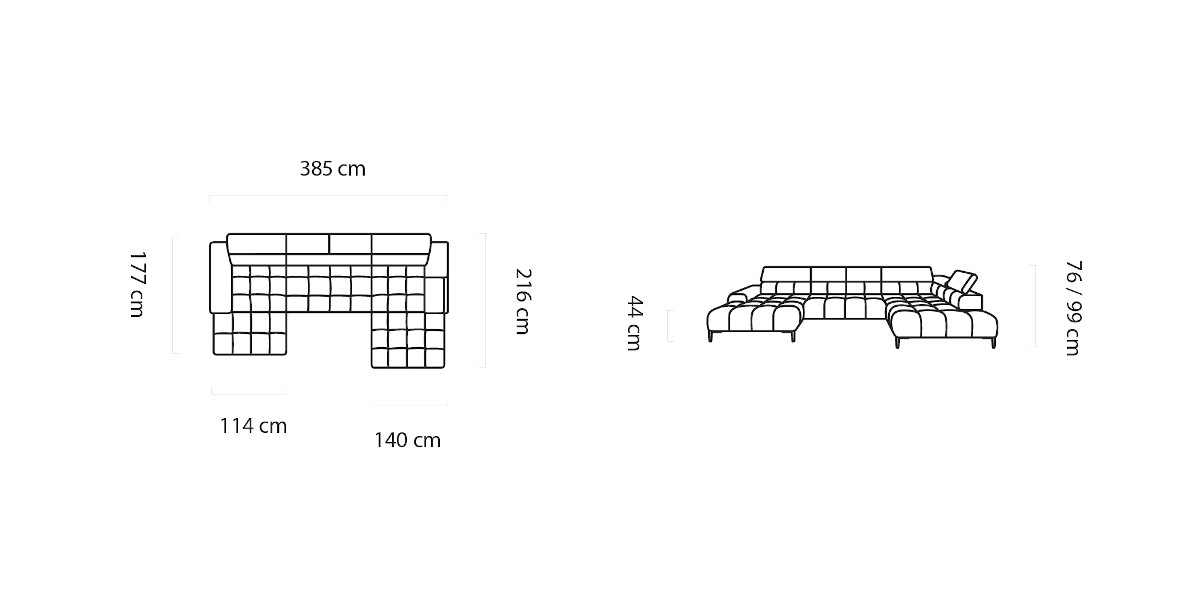 385 x 216/177 x 76/99 cm