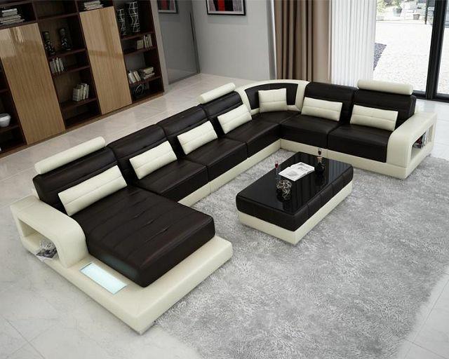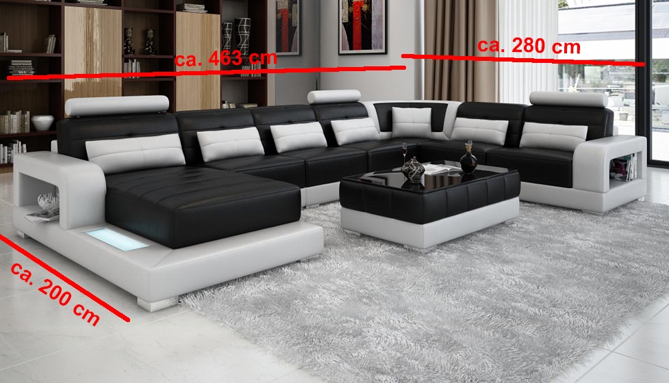 Erleben Sie ultimativen Komfort und zeitlosen Stil mit unserem Modern XXL U-Form Sofa für das Wohnzimmer! Dieses weiche Ecksofa bietet nicht nur genügend Platz zum Entspannen, sondern auch eine optionale Bettfunktion für zusätzlichen Komfort. Mit Maßen von ca. 200 x 463 x 280 cm oder 280 x 463 x 200 cm (U-Form Draufsicht) passt dieses Sofa perfekt in Ihr Zuhause. Wählen Sie Ihre Lieblingsfarbe aus einer Vielzahl von Optionen, von Zyan bis Schwarz - die Wahl liegt ganz bei Ihnen! Hergestellt aus Premium-Kunstleder, bieten wir Ihnen auch die Möglichkeit, zwischen verschiedenen Materialoptionen zu wählen, darunter Premium Textilstoff oder sogar Premium Echtleder gegen einen Aufpreis. Zusätzlich können Sie sich für Magic Home entscheiden, einen fleckenabweisenden Stoff, oder sogar italienisches Rindsleder für ein luxuriöses Finish. Das Innengestell aus echtem Holz und der Federkern sorgen für Stabilität und Komfort. Erwerben Sie noch heute Ihr Traumsofa und verwandeln Sie Ihr Wohnzimmer in eine gemütliche Wohlfühloase!