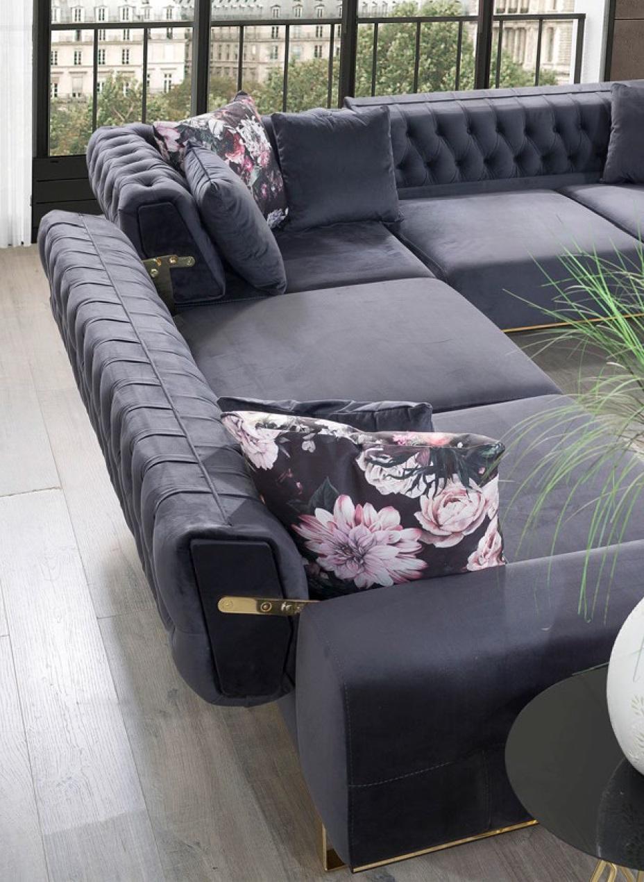 Ecksofa Couch Polster Möbel Garnitur Chesterfield Eckgarnitur Sofa Stoff