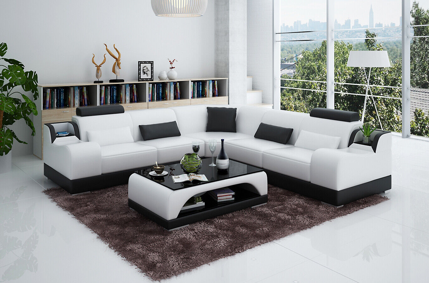 Ecksofa Couch Polster Wohnlandschaft Eck Garnitur Ecke Leder Sofa Grau