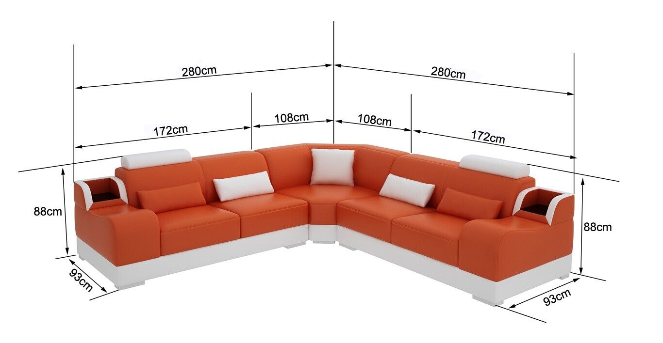 Erwerben Sie das komfortable Ecksofa Couch Polster Wohnlandschaft Eck Garnitur in Grau. Diese stilvolle Leder-Wohnlandschaft in L-Form bietet nicht nur genügend Platz für entspannte Abende, sondern ist auch ein echter Blickfang in Ihrem Wohnzimmer. Hergestellt aus hochwertigem Premium Lederfaserstoff (70% Leder / 30% Polyester) bietet dieses Ecksofa höchsten Sitzkomfort und Langlebigkeit. Die Maße des Ecksofas betragen ca. 280 x 280 x 88 cm (L x B x H), mit einer Sitzhöhe von ca. 44 cm und einer Sitztiefe von ca. 60 cm. Die Farbe des Sofas entspricht der Abbildung in Grau. Sie haben außerdem die Möglichkeit, aus verschiedenen Materialgruppen zu wählen, darunter Premium Echtleder, Textilstoff oder Vollleder. Das Innengestell aus echtem Holz sorgt für Stabilität und Langlebigkeit. Holen Sie sich jetzt dieses moderne Ecksofa für Ihr Zuhause und genießen Sie gemütliche Stunden auf Ihrer neuen Wohnlandschaft!