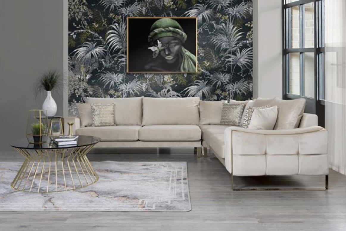 Ecksofa L Form Sofa Couch Design Couchen Polster Textil Eck Garnitur Beige