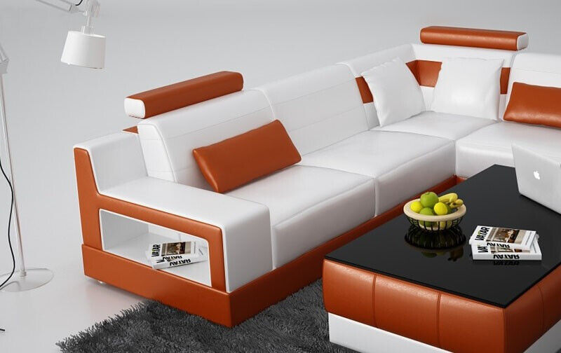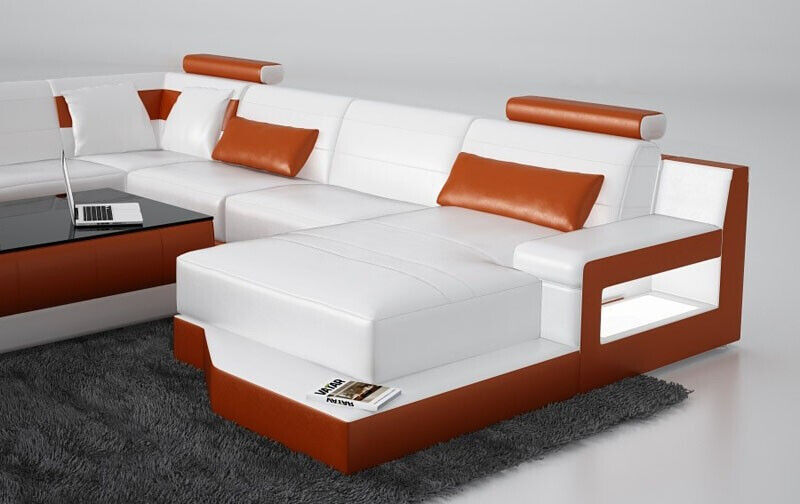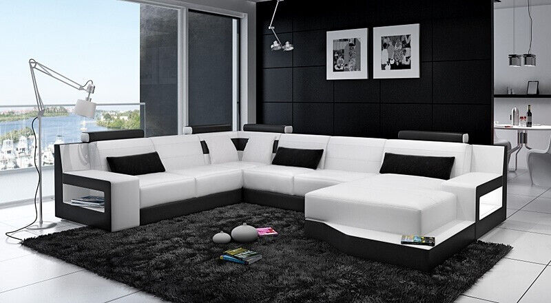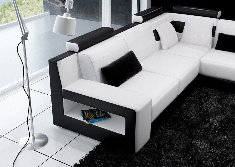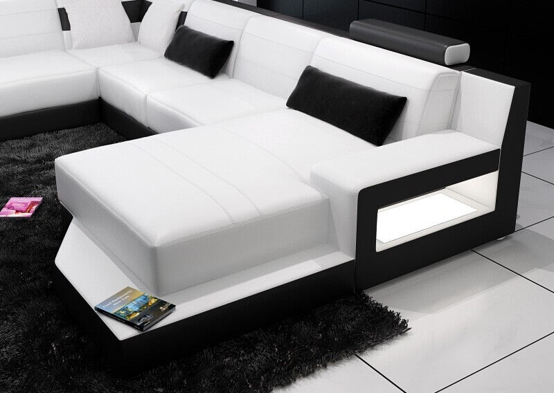 Ecksofa Sofa Wohnlandschaft U Form Polster Couch Ledersofa Weiß