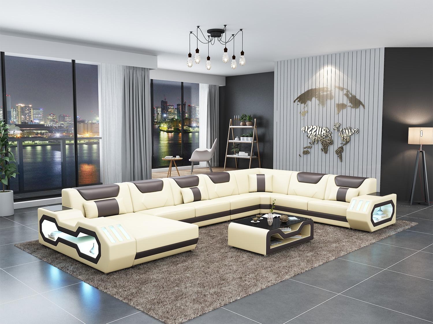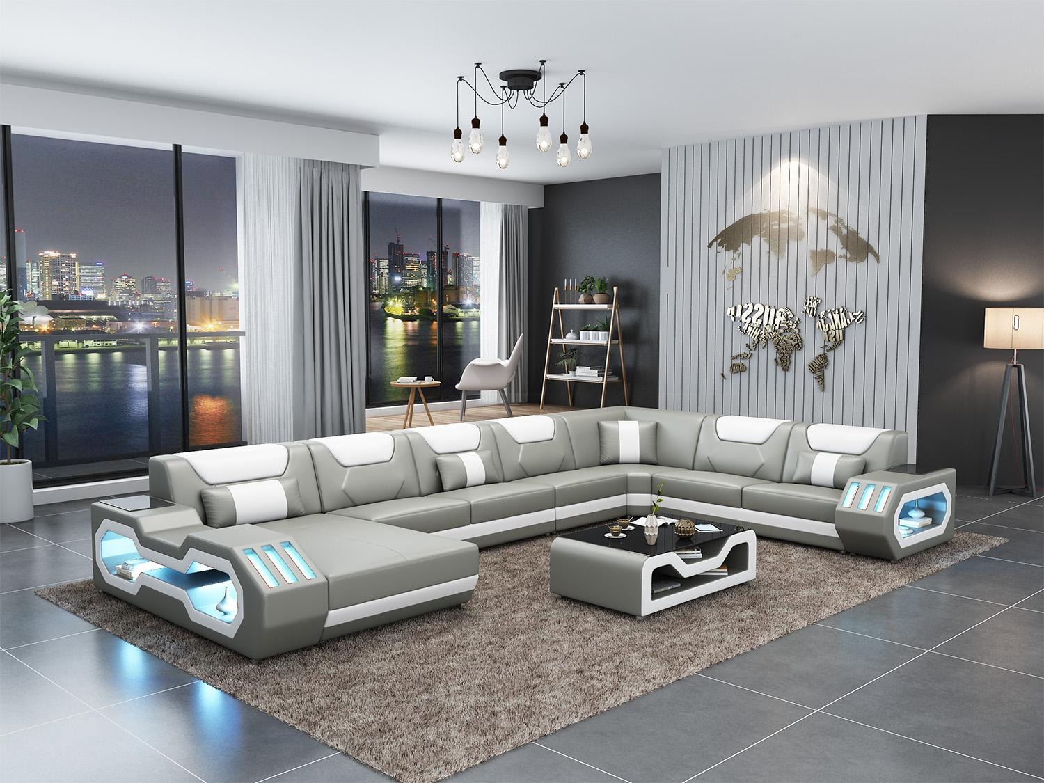 Ecksofa U-Form Couchtisch Couch Design Grau Polster Leder Modern Wohnlandschaft