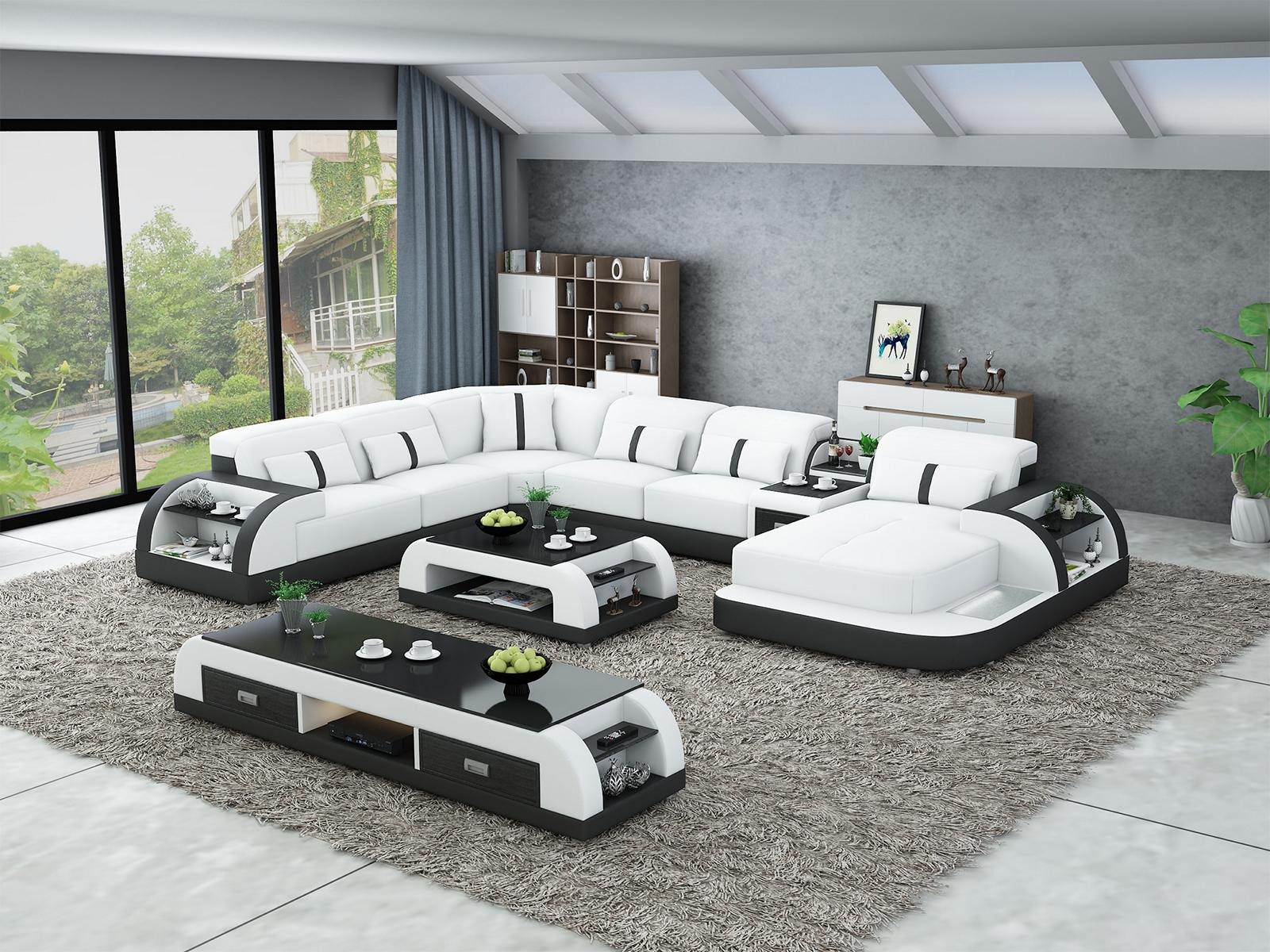 Garnitur Design Wohnlandschaft Ecksofa Sofa Couch U-Form Tisch Leder 2tlg. sets