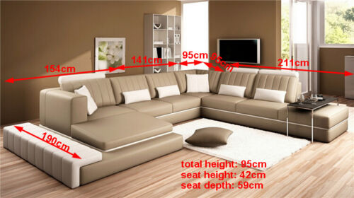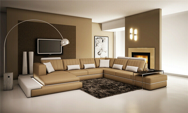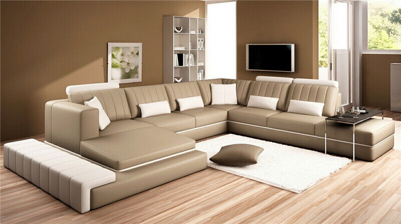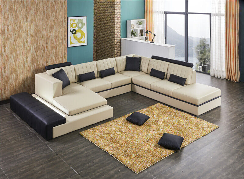 Leder Modern Couch Wohnlandschaft Ledersofa Sofagarnitur Sofa U-Form