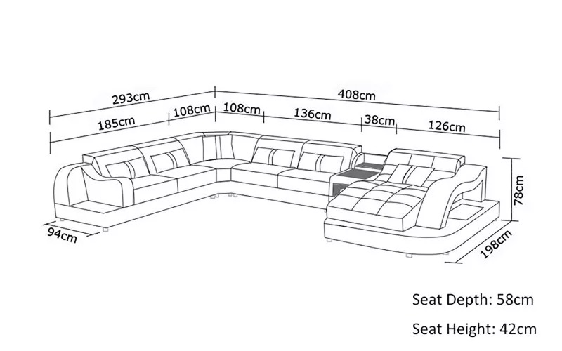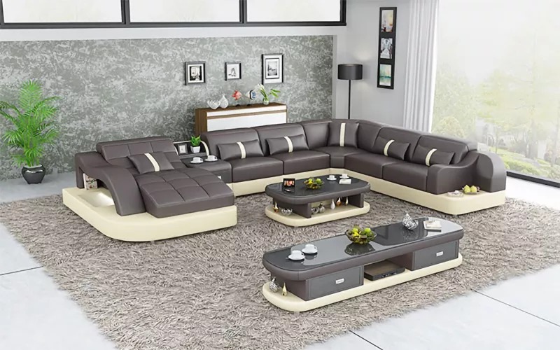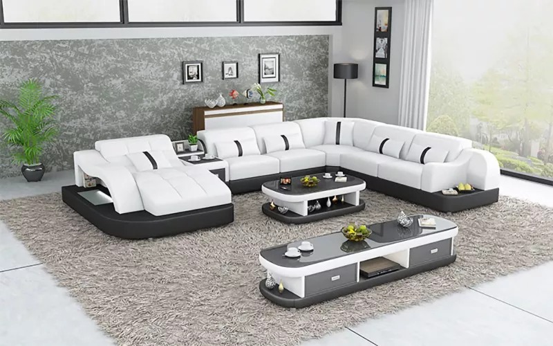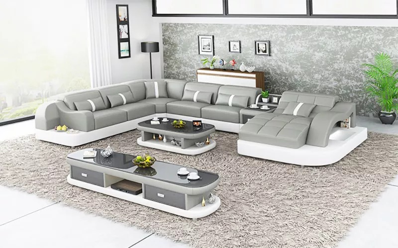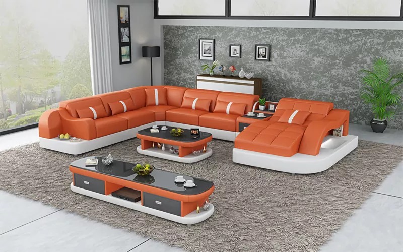 Kaufen Sie ein Ecksofa in U-Form, günstig, mit Lederpolsterung, Sofa für das Wohnzimmer