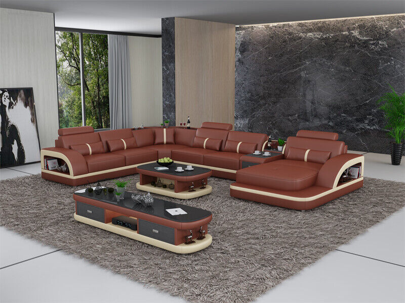 Ledersofa Ecksofa Garnitur Polster U Form Couch Sofa Design Eckgarnitur