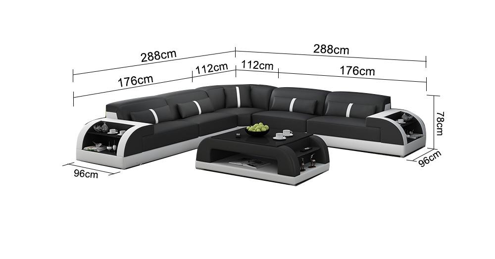 Ledersofa L-Form Couch Wohnlandschaft Ecksofa Garnitur Modern Design Sofa USB