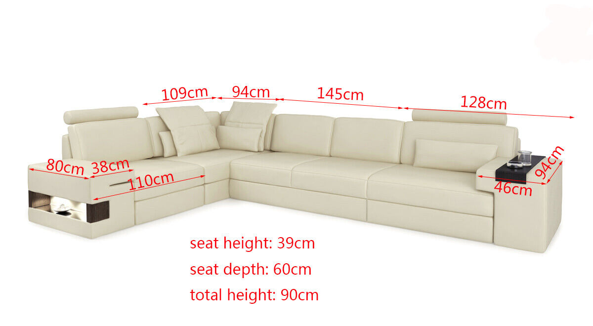 Entdecken Sie das elegante Ledersofa Modernes Polster Leder Design Ecksofa Couch Textil von XL Möbel! Dieses stilvolle Ecksofa ist nicht nur ein Blickfang in Ihrem Wohnzimmer, sondern bietet auch höchsten Komfort. Mit Maßen von ca. 367 x 109 cm oder 109 x 367 cm, einer angenehmen Sitzhöhe von ca. 39 cm und einer Sitztiefe von ca. 60 cm lädt dieses Sofa zum Entspannen ein. Das Premium Lederfaserstoff-Material (70% Leder / 30% Polyester) garantiert Langlebigkeit und ein luxuriöses Gefühl. Sie haben die Wahl aus einer Vielzahl von Farben, darunter Zyan, Rubinrot, Anthrazit und vielen mehr. Optional sind auch verschiedene Materialgruppen erhältlich, wie Premium Echtleder oder Textilstoff, gegen einen Aufpreis. Das Ledersofa verfügt zudem über ein Innengestell aus echtem Holz, was für Stabilität und Haltbarkeit sorgt. Bringen Sie stilvolles Design und Gemütlichkeit in Ihr Zuhause mit dem Ledersofa Modernes Polster Leder Design Ecksofa Couch Textil!