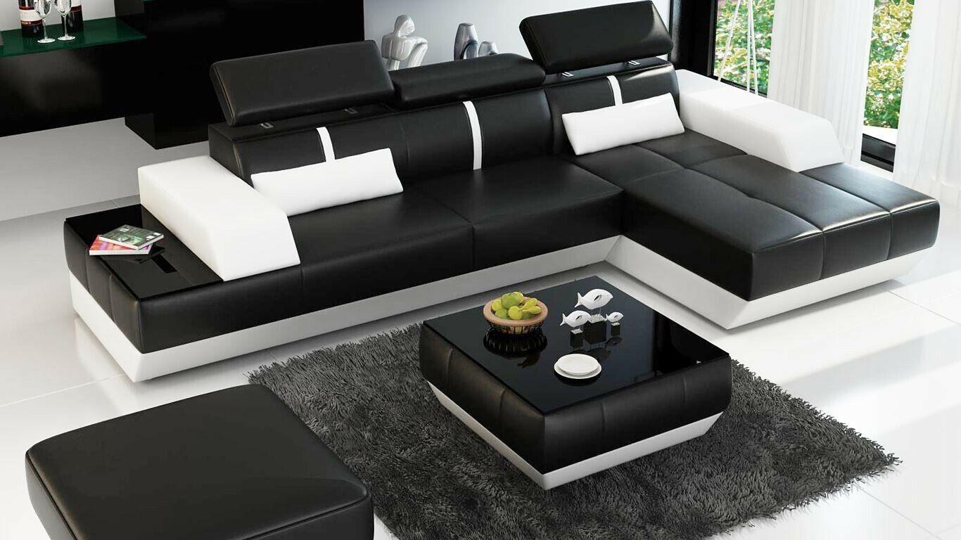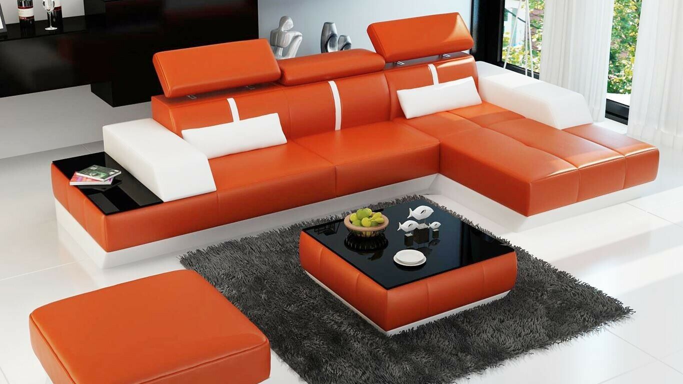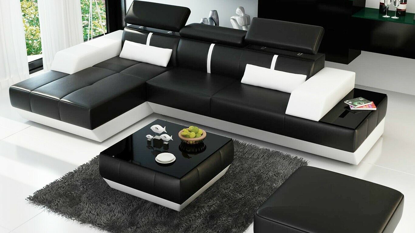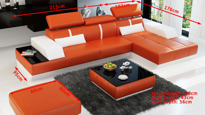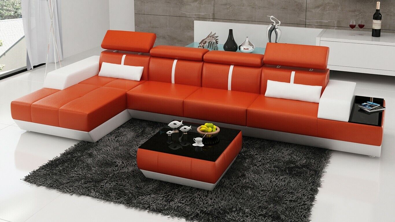 Moderne Sofa Eckgarnitur L Form Polster Sitz Ecke Couch + Hocker