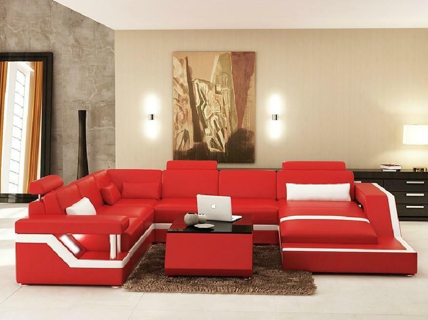 Rote Ecksofa Ledersofa Big XXL U Form Wohnlandschaft Sofa Couch