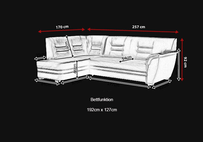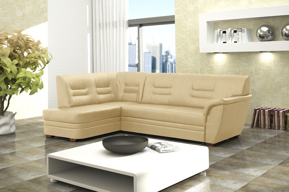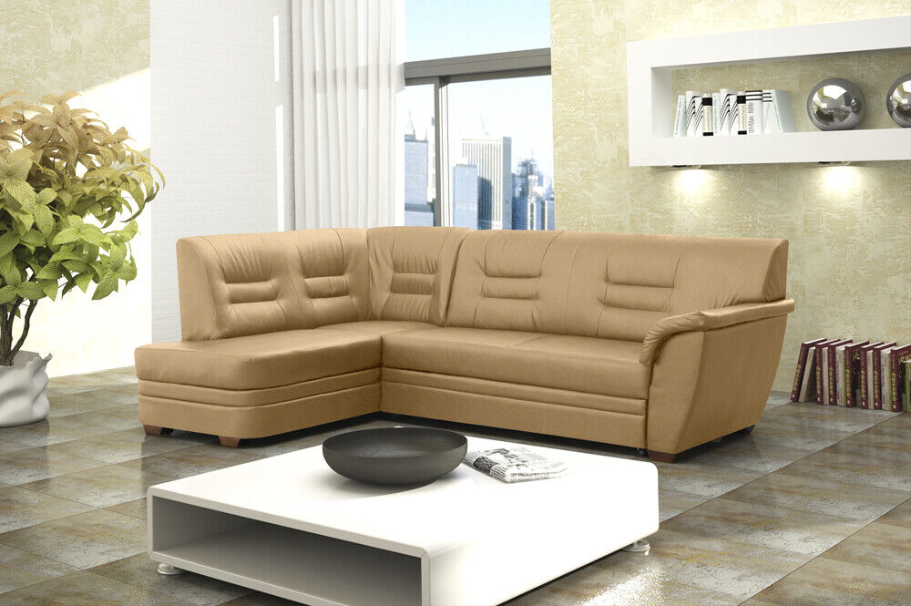 Erwerben Sie jetzt dieses stilvolle Sofa Schlafsofa mit Designer-Bettfunktion und Bettkasten von XL Möbel! Das Ecksofa in L-Form hat eine Liegefläche von ca. 192 x 127 cm und bietet Ihnen höchsten Komfort. Wählen Sie aus einer Vielzahl von Farben wie Zyan, Flieder, Burgunderrot, Schwarz und vielen mehr. Das Material können Sie ebenfalls frei wählen, ob Stoff oder Premium Kunstleder in verschiedenen Qualitätsgruppen. Zusätzlich können Sie gegen einen Aufpreis von 99,00 EUR eine Unterboden LED Beleuchtung hinzufügen. Das Innengestell aus echtem Holz sorgt für Stabilität und Langlebigkeit. Entdecken Sie jetzt die vielfältigen Möglichkeiten dieses Ecksofas und machen Sie es zu einem Highlight in Ihrem Wohnzimmer. Gönnen Sie sich Qualität und Funktionalität mit diesem Eckcouchen Ecksofa!