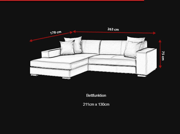 Sofa Schlafsofa Designer Sofas mit Bettfunktion Ecksofa Couch NEU + Bettkasten