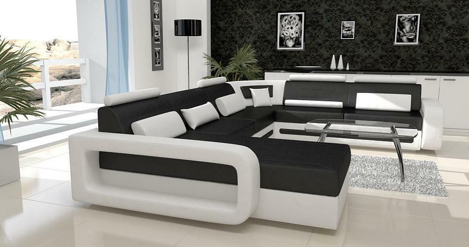 U Form Sofa Couch Polster Ecksofa Garnitur Wohnlandschaft Leder Design
