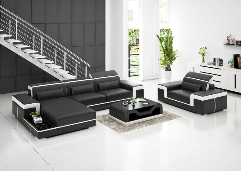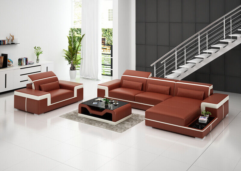 Wohnlandschaft Ecksofa L-Form Sessel Set Garnitur Modern Sofa Leder