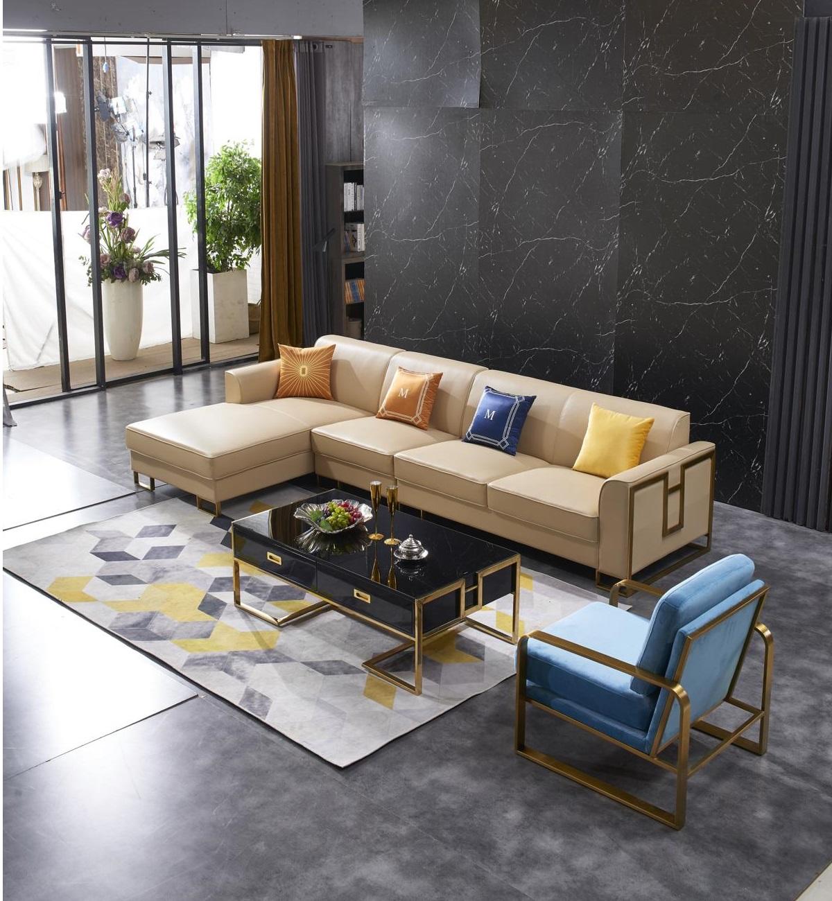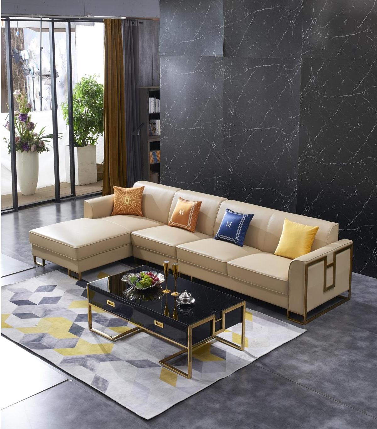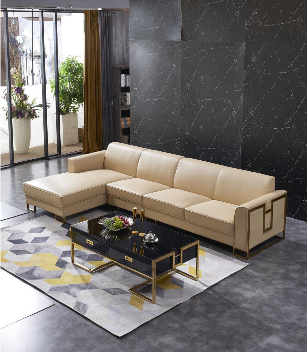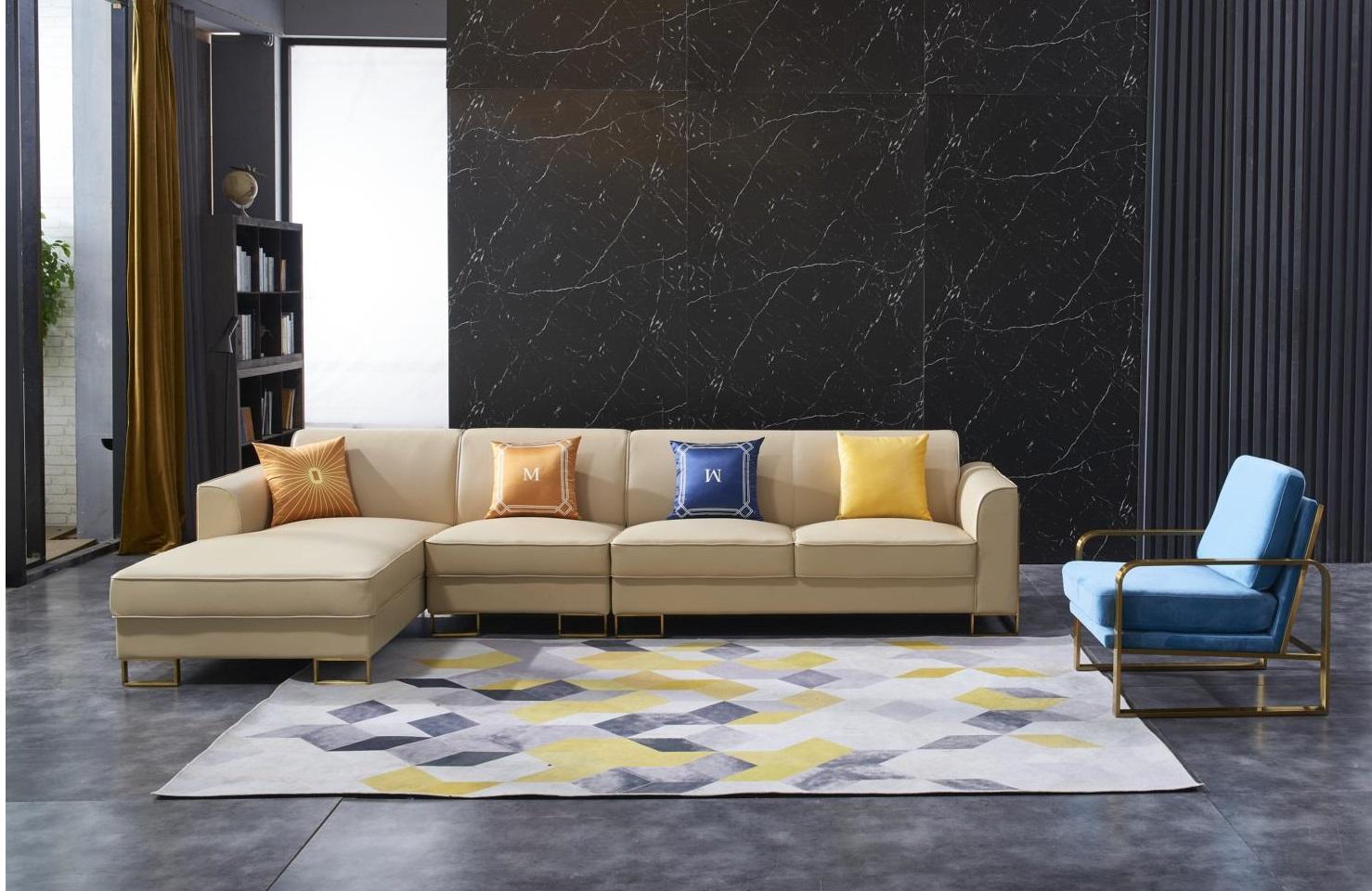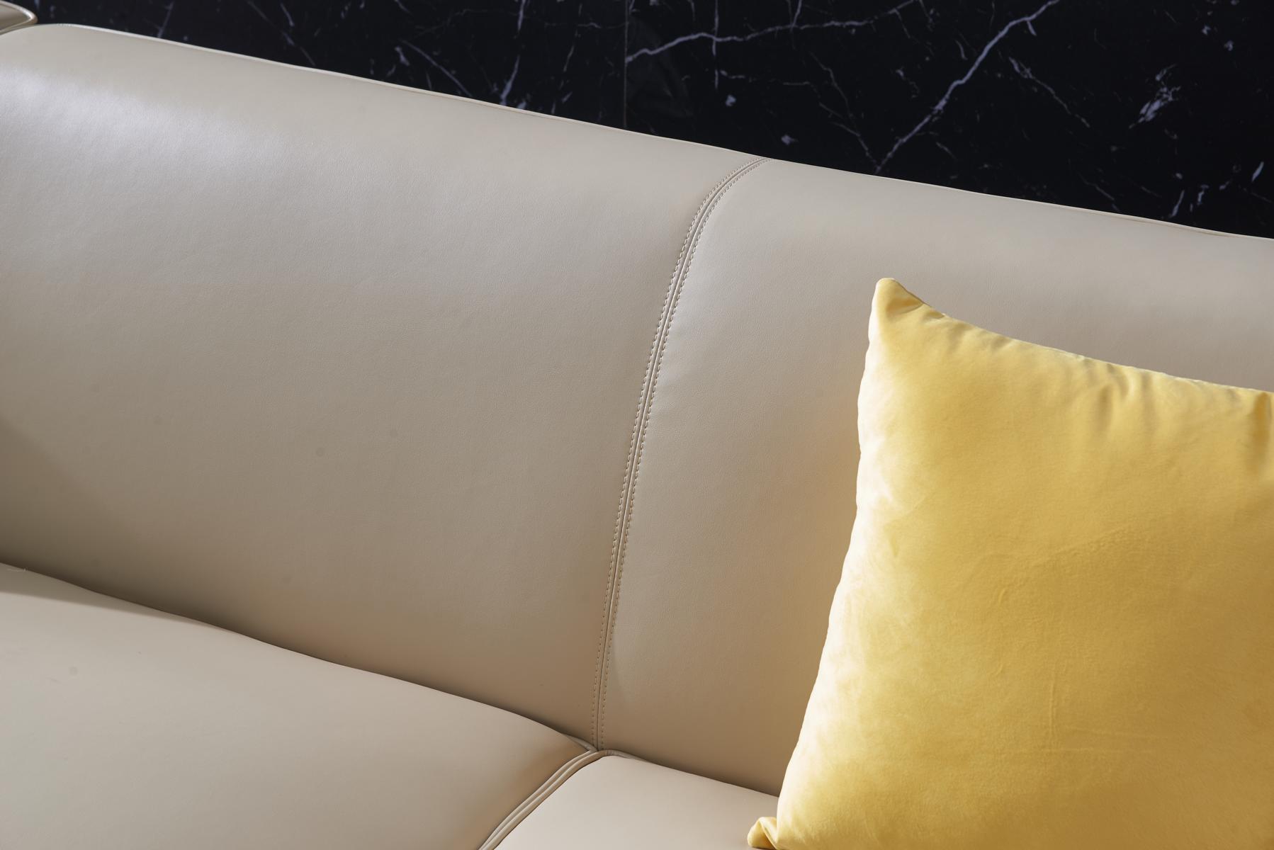 Schaffen Sie mit dieser eleganten und bequemen Wohnlandschaft in L-Form einen stilvollen Mittelpunkt in Ihrem Wohnzimmer. Das Ecksofa von XL Möbel besticht nicht nur durch sein modernes Design, sondern auch durch seine hochwertigen Materialien. Hergestellt aus Holz, Kunstleder und Edelstahl, bietet dieses Ecksofa nicht nur Komfort, sondern auch Langlebigkeit. Die Maße des Ecksofas betragen ca. 339 x 175 cm in der Länge, ca. 80 cm in der Höhe, ca. 92 cm in der Tiefe, eine Sitztiefe von ca. 56 cm und eine Sitzhöhe von ca. 44 cm. Der Korpus verfügt über ein Innengestell aus echtem Holz und eine Unterfederung mit Federkern, was für zusätzlichen Sitzkomfort sorgt. Das Ecksofa ist in der abgebildeten Farbe erhältlich und kann in verschiedenen anderen Farben bestellt werden. Wählen Sie aus einer Vielzahl von Farben wie Zyan, Amethyst, Weinrot, Schwarz und vielen mehr, um das Sofa an Ihren persönlichen Stil anzupassen. Bringen Sie Stil und Gemütlichkeit in Ihr Zuhause mit dieser exquisiten L-Form Wohnlandschaft. Bestellen Sie jetzt und machen Sie Ihr Wohnzimmer zu einem Ort der Entspannung und des modernen Designs!