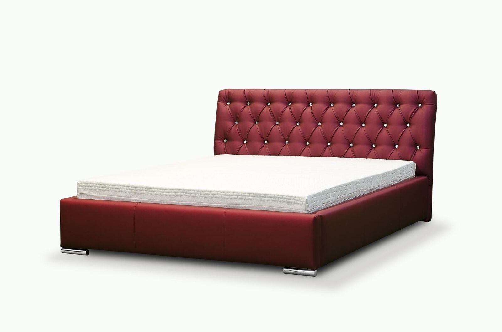 Holen Sie sich das ultimative Bett in Ihr Schlafzimmer mit unserem Bettrahmen Bett Doppelbett Ehebett Bettgestell in Grau! Mit einer Liegefläche von ca. 200 x 200 cm bietet dieses Polsterbett genug Platz zum Entspannen. Die nach hinten gebogene Kopfstütze, die mit 3 cm Schaum gepolstert ist und mit funkelnden Strassimitationen versehen ist, verleiht Ihrem Schlafzimmer einen Hauch von Luxus. Der Bettrahmen ist mit Polsterknöpfen versehen und wird standardmäßig mit einem Metallrahmen geliefert, der mit 34 belastbaren und flexiblen Lamellen ausgestattet ist. Der Gaslift mit 1000N sorgt für ein leichtes Anheben des Bettes und bietet die Möglichkeit, es mit oder ohne Bettkasten zu wählen. Sie haben die Freiheit, die Farbe und das Material Ihres Bettes zu wählen. Entweder Stoff oder Premium Kunstleder der Gruppe I ohne Aufpreis oder der Gruppe II gegen einen kleinen Aufpreis. Optional können Sie das Bett mit einem Bettkasten oder einer Matratze erwerben, um Ihren Komfort zu erhöhen. Investieren Sie in Qualität und Komfort mit unserem eleganten Bettrahmen!