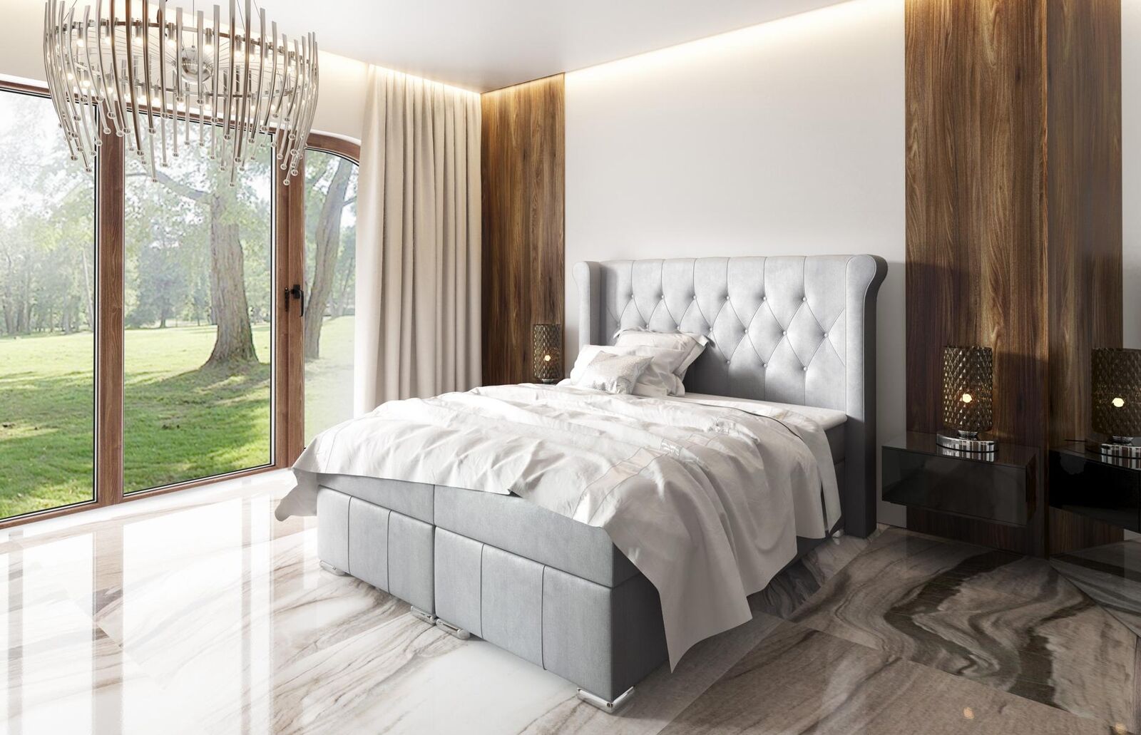 Erleben Sie ultimativen Komfort und Eleganz mit unserem Chesterfield Bett inklusive Bettkasten! Dieses luxuriöse Boxspringbett ist perfekt für zu Hause, das Schlafzimmer, das Hotel und kommt in allen Größen! Mit einer Liegefläche von ca. 160 x 200 cm bietet dieses Bett ausreichend Platz zum Entspannen. Zwei geräumige Bettkästen sorgen für zusätzlichen Stauraum. Die Hauptmatratze besteht aus hochflexiblem Taschenfeder und Schaumstoff T30. Der Topper aus Hochflexiblem Schaumstoff und das gesteppte Kopfteil mit Polsterknöpfen bieten höchsten Schlafkomfort. Wählen Sie aus verschiedenen Optionen, um die perfekte Passform für Ihr Schlafzimmer zu finden. Darüber hinaus können Sie die Farbe und das Material nach Ihren Wünschen auswählen. Ergänzen Sie Ihr Schlafzimmer mit diesem stilvollen Chesterfield Bett und genießen Sie erholsame Nächte. Lieferumfang: Ein Bett - alles, was Sie brauchen für einen erholsamen Schlaf! Lassen Sie sich diesen zeitlosen Klassiker nicht entgehen!