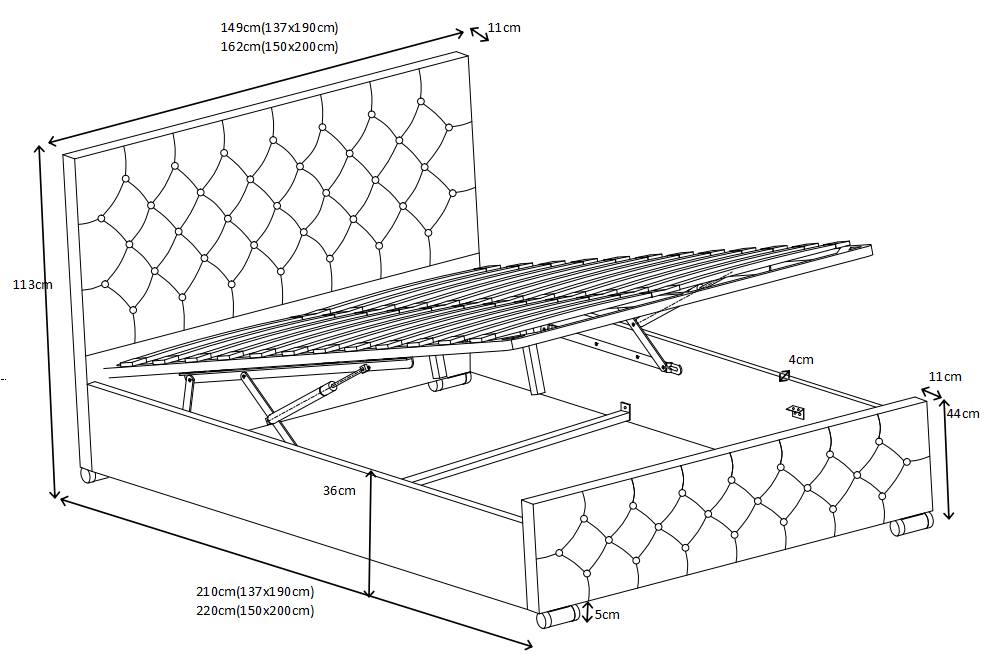 Liegefläche 160 x 200 cm (Außenmaße 240 x 190 cm)