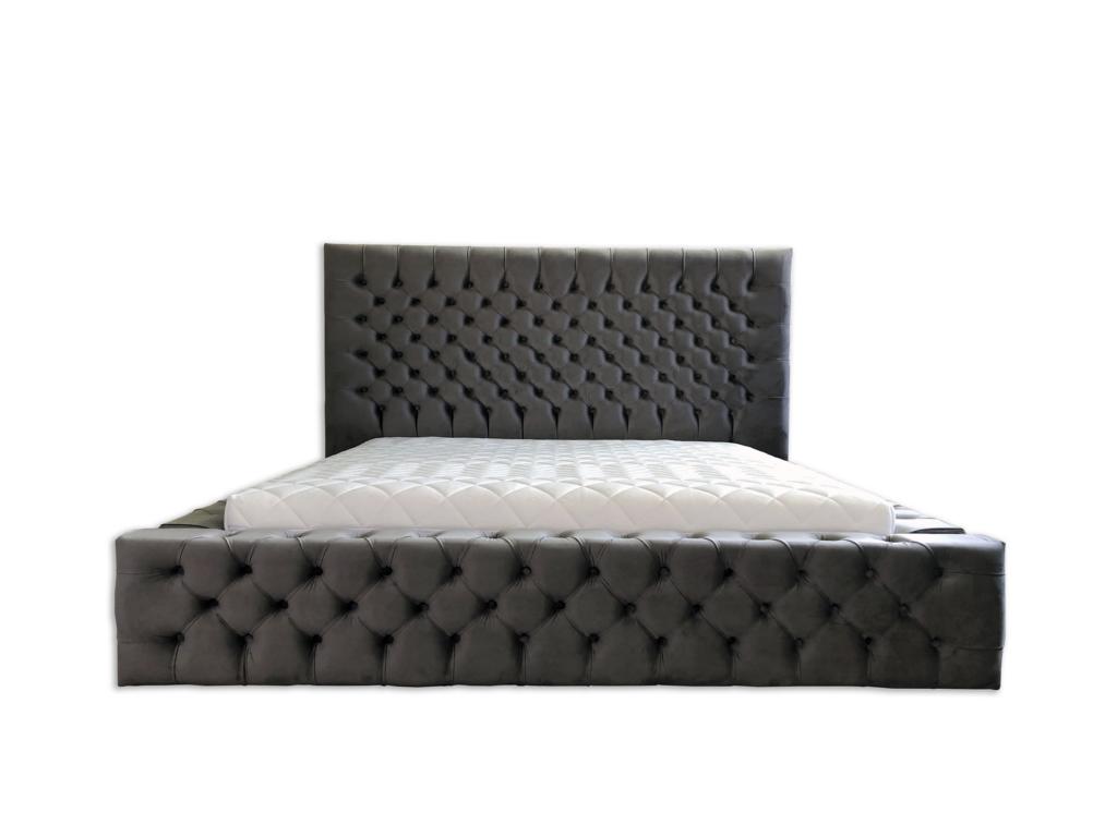 Chesterfield Grey Doppel Schlafzimmer Holzmöbel Design elegante Polsterung Stoff