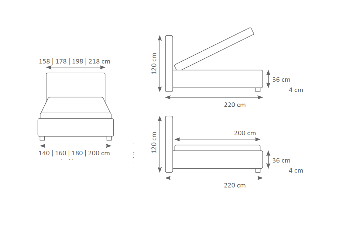 ca. 140/160/180/200 x 200 cm