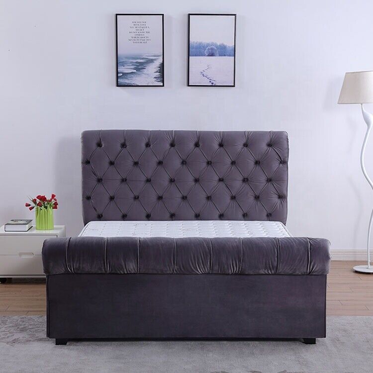 Design Chesterfield Bett Textil Leder Hotel Betten Schlafzimmer Neu Samt Polster