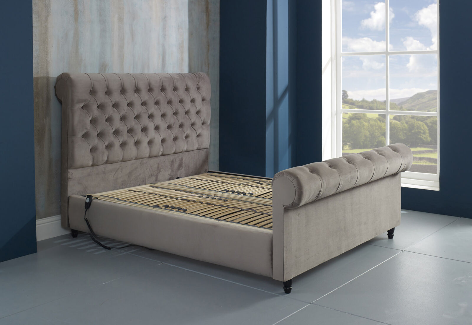 Designer Chesterfield Taupes Luxus Doppelbett Polster Gestell