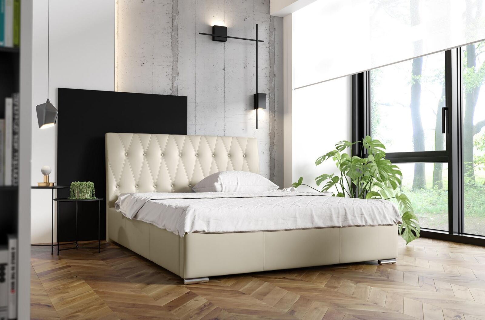Holen Sie sich das ultimative Bett in Ihr Schlafzimmer! Unser Doppelbett Bettrahmen Ehebett Bettgestell Bett Polsterbett aus Polyester ist das perfekte Stück für erholsame Nächte. Der Bettrahmen hat eine Liegefläche von ca. 160 x 200 cm und besticht mit einer nach hinten gebogenen Kopfstütze, die mit 3 cm Schaumstoff gepolstert ist. Dank des Metallrahmens mit 34 belastbaren Lamellen bietet das Bett maximale Stabilität. Sie haben die Möglichkeit, zwischen verschiedenen Optionen zu wählen, einschließlich der Liegeflächen-Größen von 120 x 200 cm bis 200 x 200 cm, sowie der Farbe und des Materials. Wählen Sie zwischen Stoff oder Premium Kunstleder der Gruppe I oder II. Der Bettrahmen kann auch mit einem Bettkasten oder einer Matratze geliefert werden, um Ihren Komfort zu maximieren. Stellen Sie sich Ihr Traumbett zusammen und genießen Sie erholsame Nächte in Ihrem Schlafzimmer!