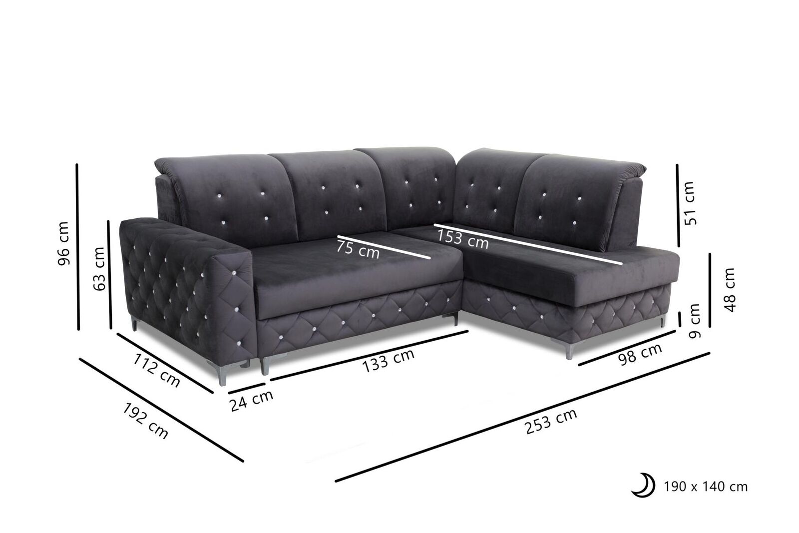 Entdecken Sie unser Ecke Landschaft Polster Design Wohn L Form Eck Sofa aus hochwertigem Textil! Dieses gemütliche Ecksofa bietet nicht nur genügend Platz für die ganze Familie, sondern lässt sich auch nach Ihren individuellen Wünschen anpassen. Wählen Sie aus einer Vielzahl von Farben wie Braun, Grün, Schwarz, Blau, Rot und Grau sowie verschiedenen Materialoptionen wie Samt, Velours, Polyester, Kunstleder oder Leder. Die Maße dieses modernen Ecksofas betragen je nach Ausführung 253 cm x 192 cm auf der linken Seite und 192 cm x 253 cm auf der rechten Seite. Mit einer Höhe von ca. 96 cm und einer Sitzhöhe von ca. 48 cm bietet dieses Sofa optimalen Komfort. Der Schlafbereich von ca. 140 x 190 cm sorgt zudem für eine angenehme Schlafmöglichkeit für Gäste. Profitieren Sie von einem Innengestell aus echtem Holz, das für Stabilität und Langlebigkeit sorgt. Bestellen Sie jetzt Ihr individuell angepasstes Ecksofa und verleihen Sie Ihrem Wohnzimmer einen neuen Look!