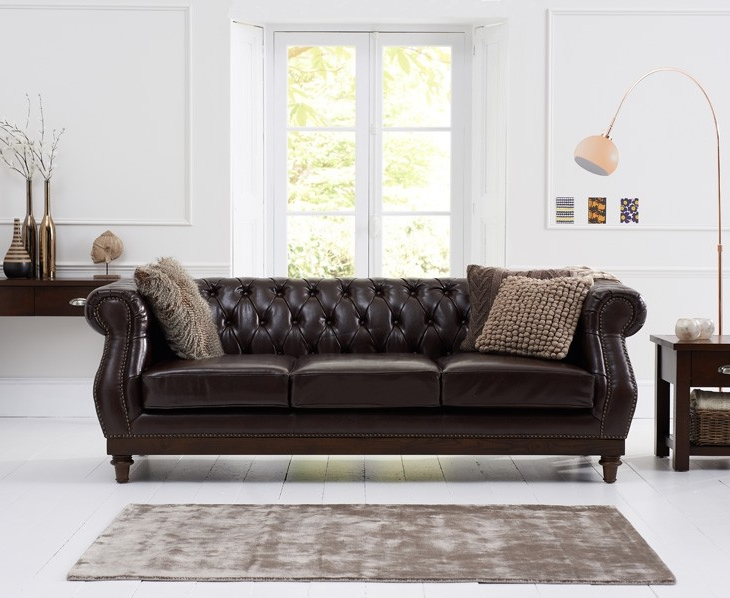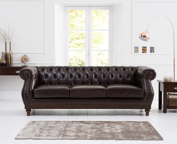 Chesterfield Designer Brauner 3-Sitzer Luxus Wohnzimmer Sofa