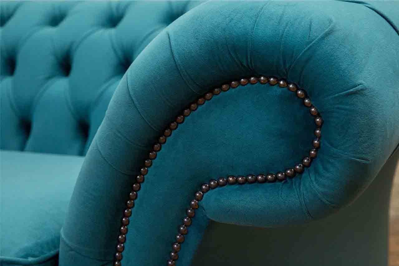 Chesterfield Dreisitzer Blau Stoff Wohnzimmer Design Polster Sofa