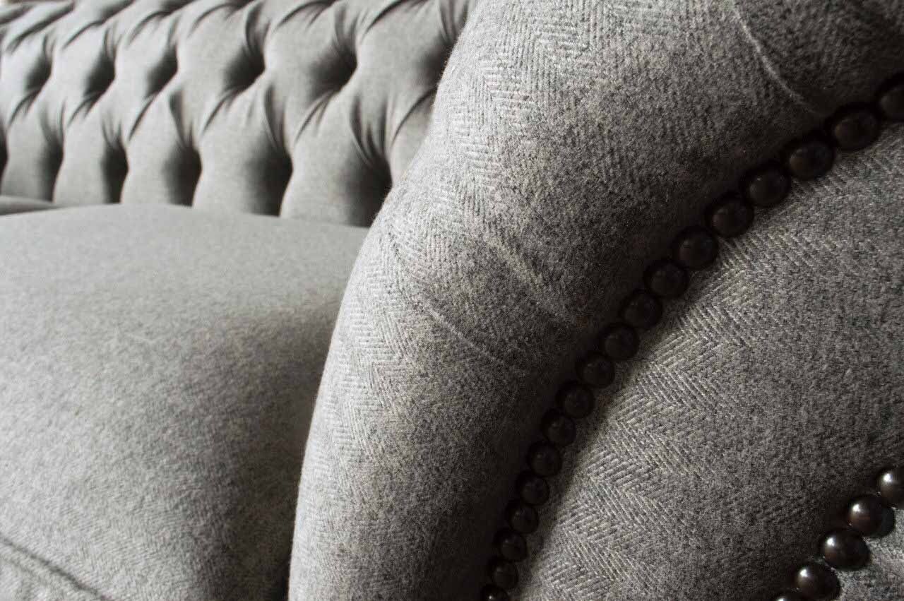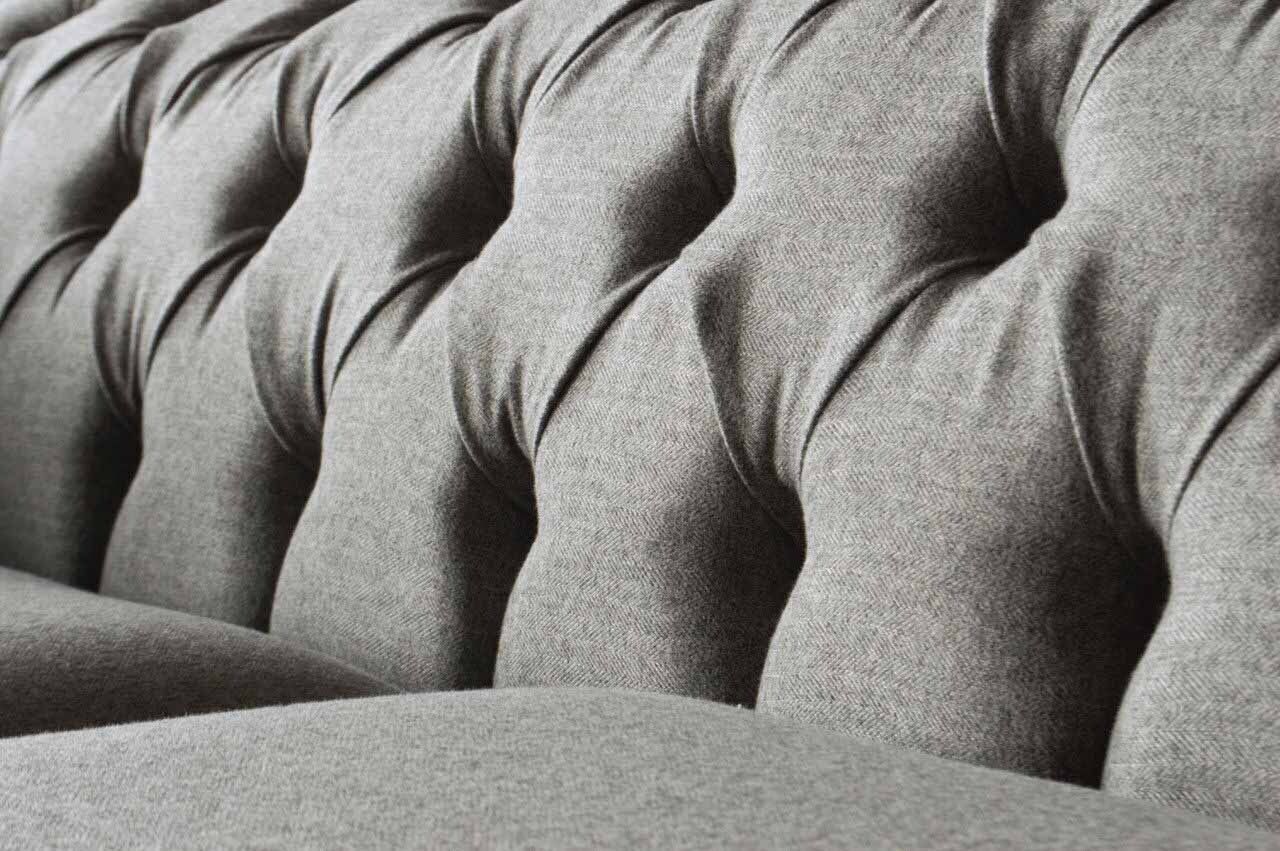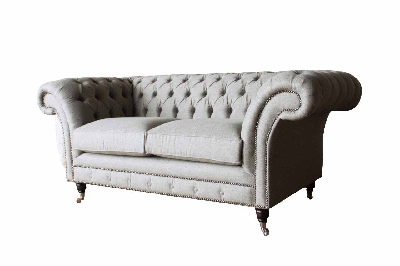 Chesterfield Grau Sofa 2 Sitz Couch Holz Möbel Dreisitzer Couchen Neu