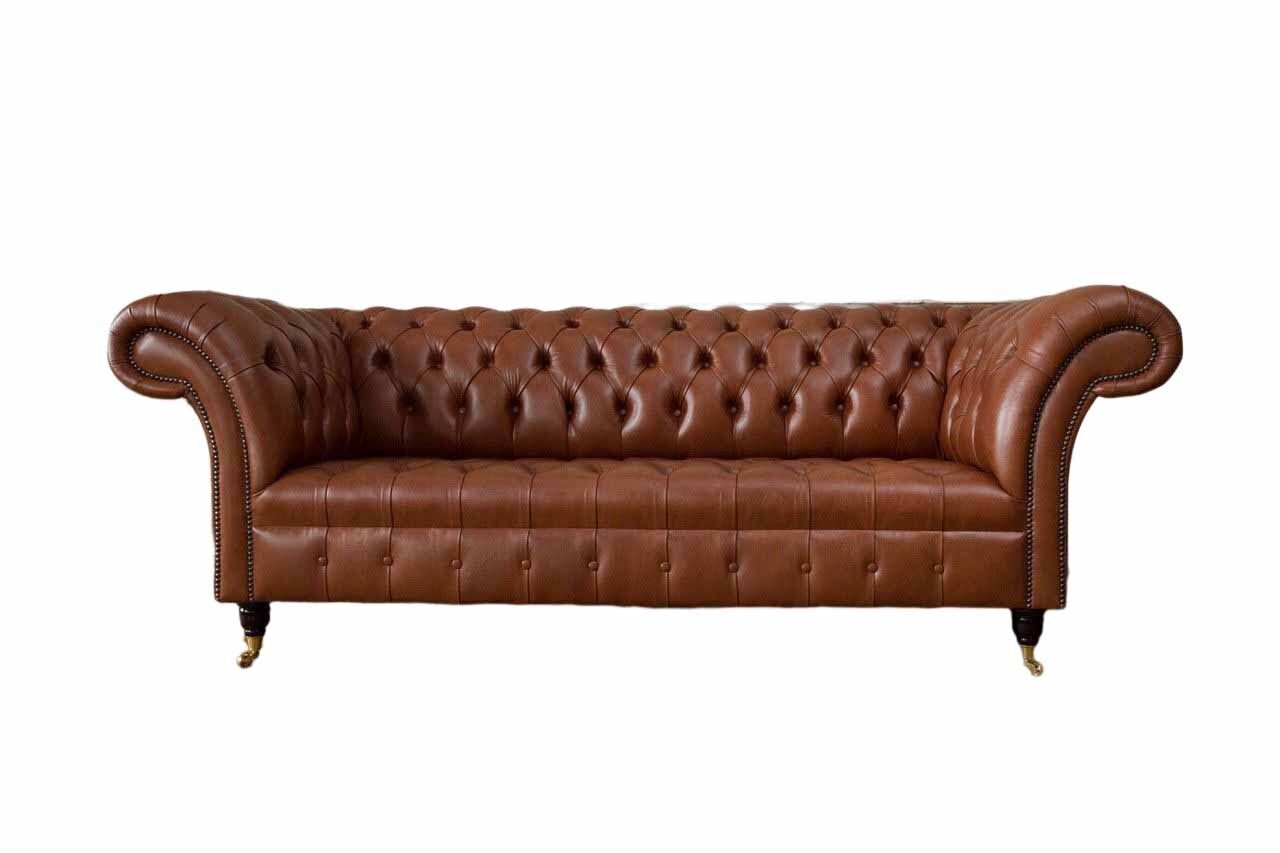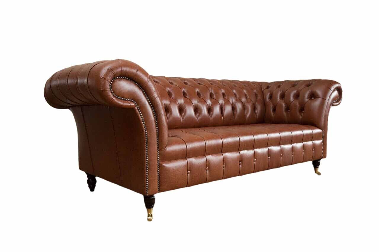 Chesterfield Sofa 3 Sitzer Braun Modern Polster Leder Wohnzimmer Design