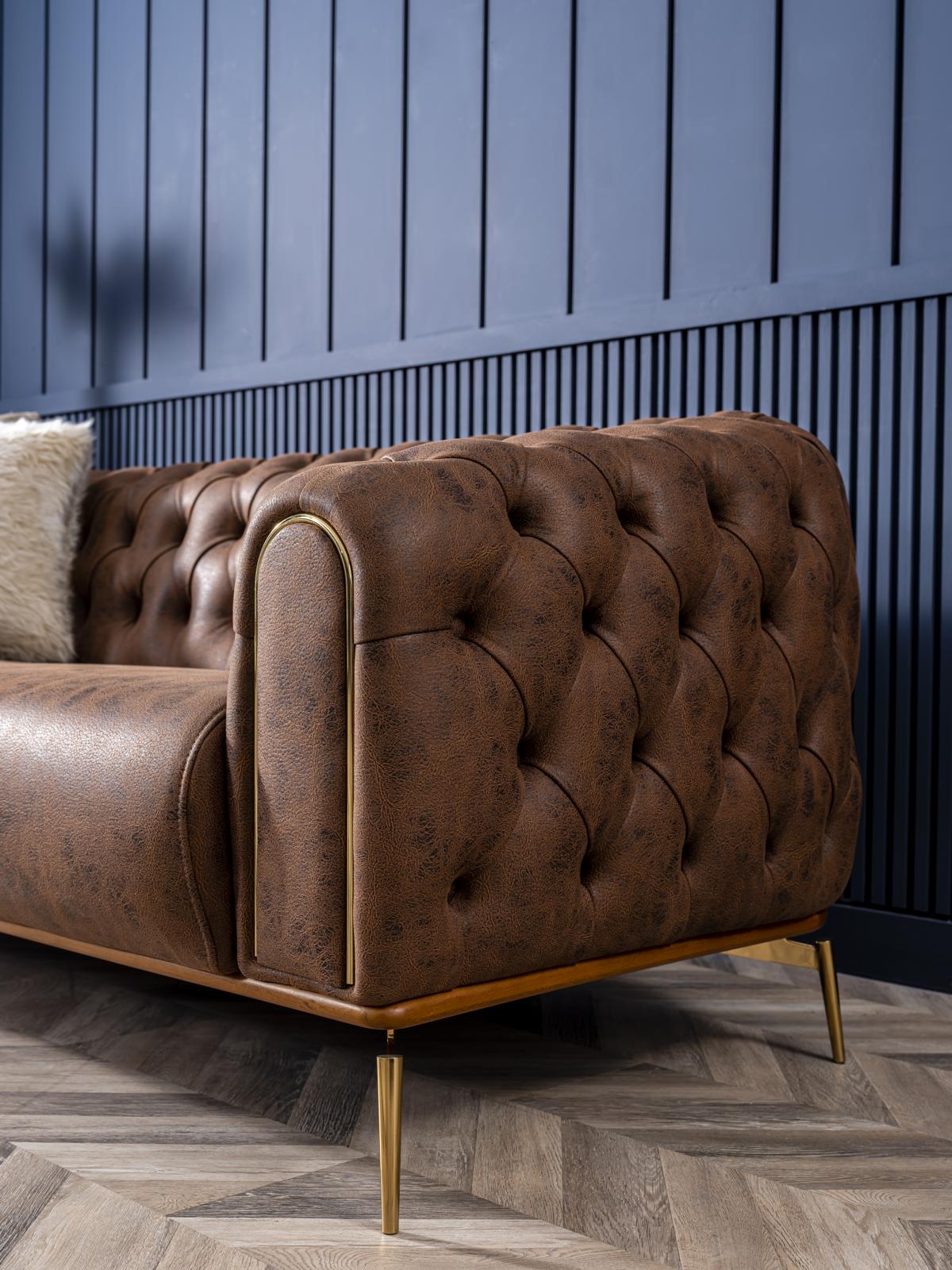 Entspannen Sie in Stil und Komfort mit unserem Chesterfield Sofa 3 Sitzer! Dieses elegante Möbelstück ist in verschiedenen Größen erhältlich und wird in einer Vielzahl von Farben angeboten, von klassischem Grau bis zu lebhaften Gelb- und Grüntönen. Das Sofa misst ca. 230 x 80 x 100 cm und bietet eine Sitzhöhe von ca. 44 cm sowie eine Sitztiefe von ca. 56 cm. Gefertigt aus hochwertigem Kunstleder, überzeugt es nicht nur durch sein ansprechendes Design, sondern auch durch seine Langlebigkeit. Genießen Sie gemütliche Abende auf Ihrem neuen Chesterfield Sofa!