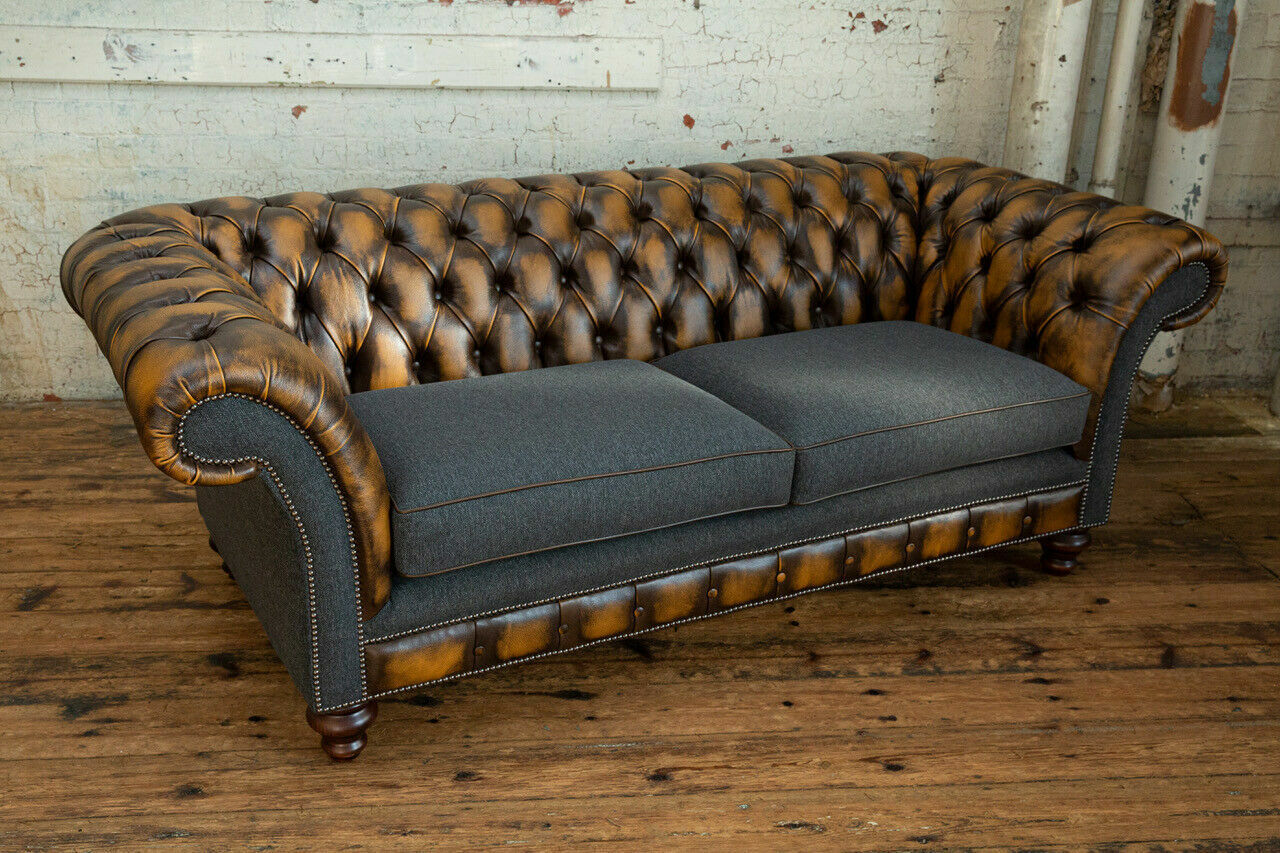 Design Chesterfield Sofa 3 Couch Sofa Set Stoff Polster Leder Dreisitzer