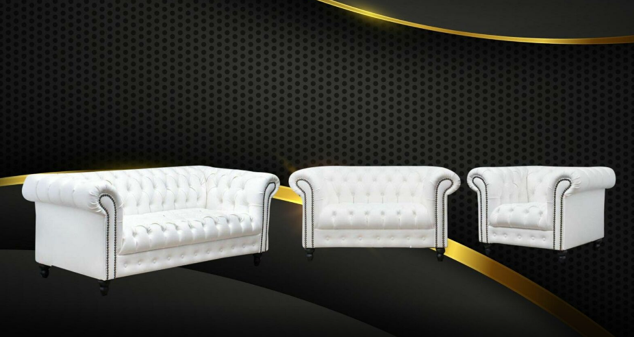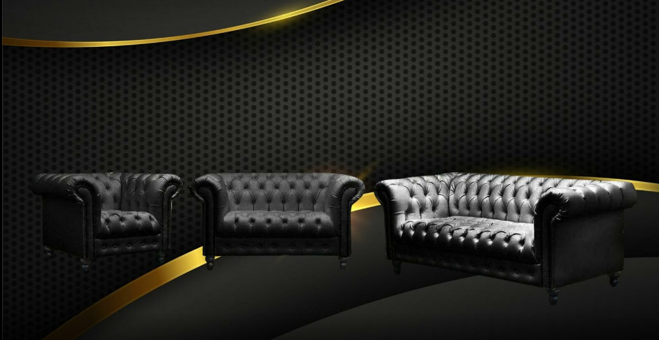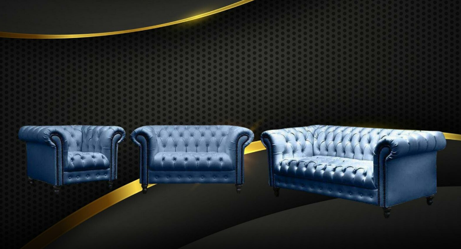 Dreisitzer Chesterfield Sofa Couch Polster Luxus Möbel Stoff Couchen