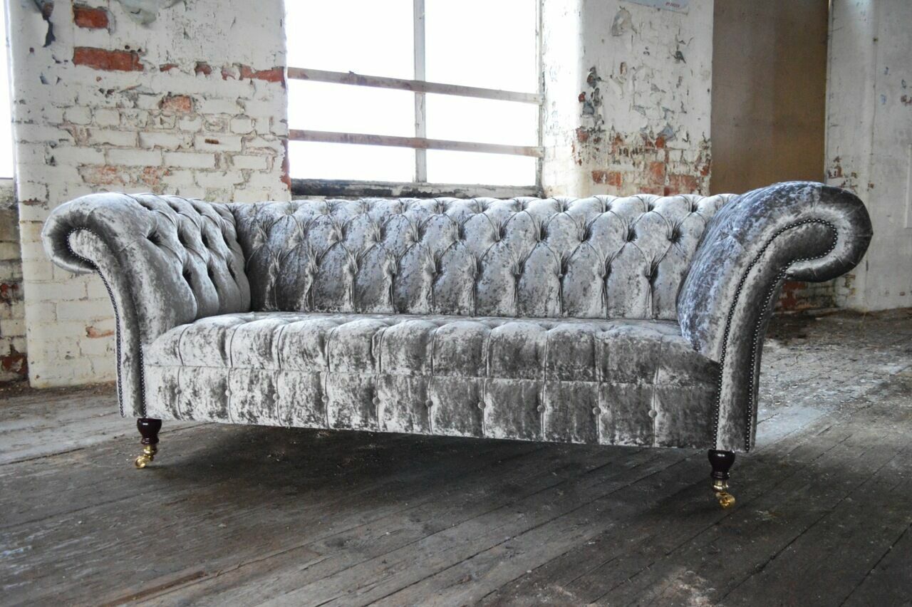 Dreisitzer Silber Couch Polster Design Sofa 3-er Chesterfield Sofa