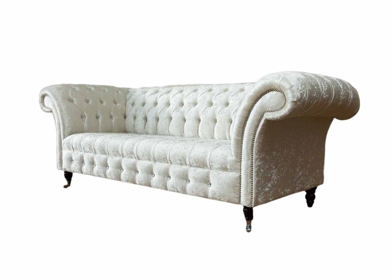 Dreisitzer Weiß Stoff Wohnzimmer Design Couchen Sofa Chesterfield Couch