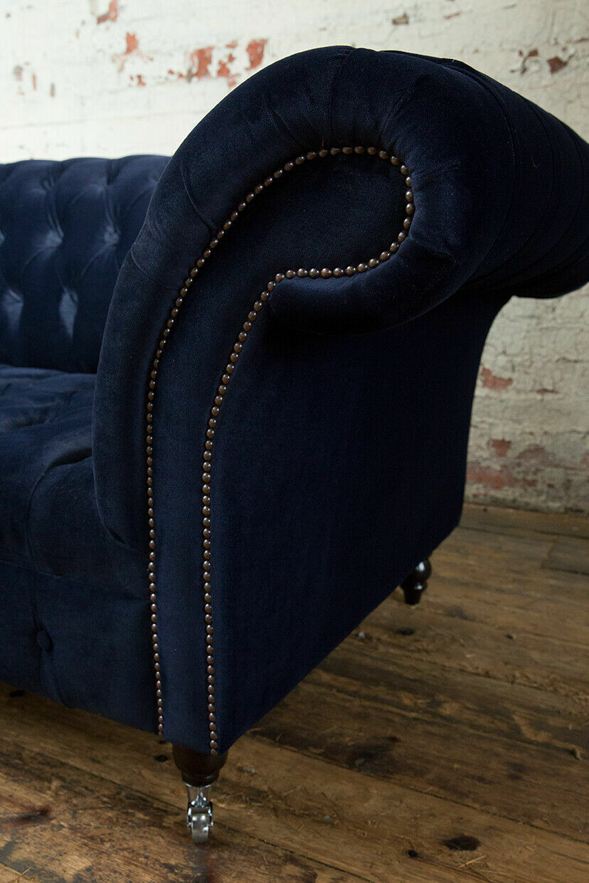 Genießen Sie Luxus und Komfort in Ihrem Wohnzimmer mit dem dunkelblauen Chesterfield Dreisitzer. Dieses moderne Sofa ist ein wahrer Blickfang und bietet Ihnen eine gemütliche Sitzgelegenheit für entspannte Stunden. Mit einer Breite von ca. 225 cm, einer Höhe von ca. 79 cm und einer Tiefe von ca. 98 cm bietet dieses Sofa viel Platz zum Entspannen. Der Chesterfield Dreisitzer ist in verschiedenen Größen und Farben erhältlich, damit er perfekt zu Ihrem Wohnzimmer passt. Wählen Sie aus einer Vielzahl von Farben wie Taubengrau, Zementgrau, Lavendelgrau, Sonnengelb, Erbsengrün und vielen mehr. Sie können auch das Material nach Ihrem Geschmack auswählen, ob Premium Kunstleder/Stoff, Premium Echtleder oder Premium Samt Stoff. Das Sofa verfügt über ein hochwertiges Innengestell aus echtem Holz und eine Unterfederung mit Federkern, die für Stabilität und Langlebigkeit sorgen. Optional sind auch verschiedene Extras wie Fleckenabweisender Stoff oder echte Swarovski Kristallsteine für eine einzigartige Optik erhältlich. Erleben Sie ein einzigartiges Wohnzimmererlebnis mit dem Chesterfield Dreisitzer und holen Sie sich Ihren persönlichen Luxus-Couch nach Hause!