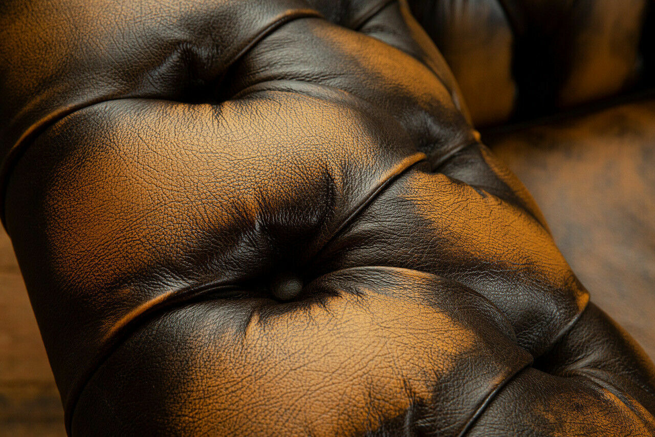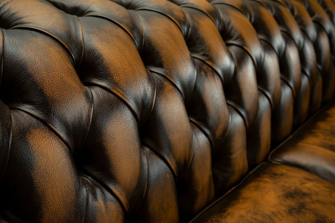 Edler Chesterfield Brauner Dreisitzer Luxus Polster Couchen Designer Sofas