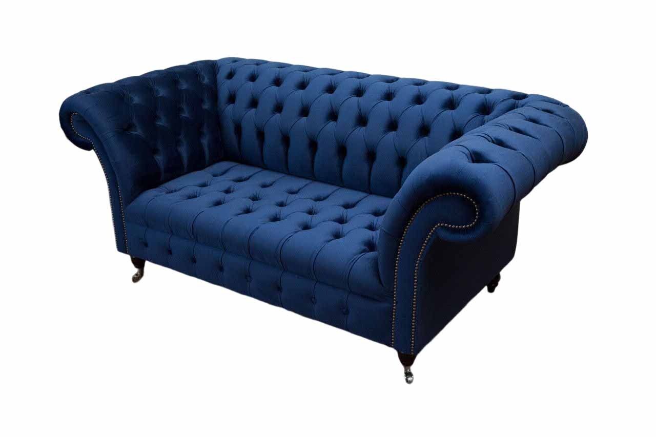 Englische Chesterfield Büro Sitzmöbel Einrichtung Sofa Couch 2 Sitz Royalblau