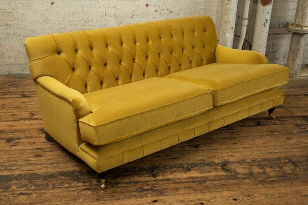Gelbe Chesterfield Stoff Polster Dreisitzer Wohnzimmer Couch Design