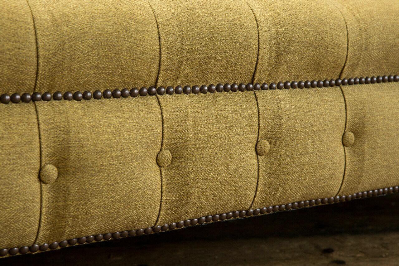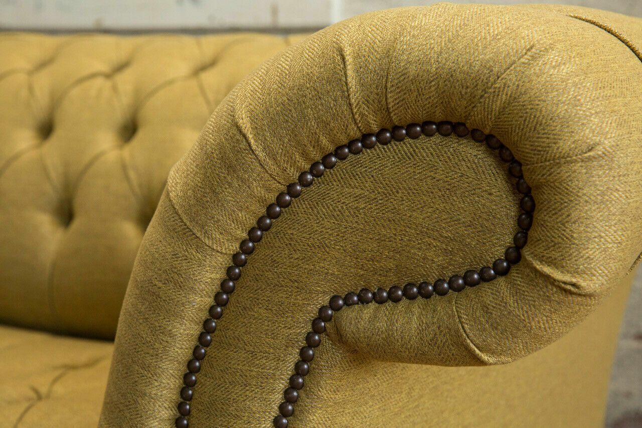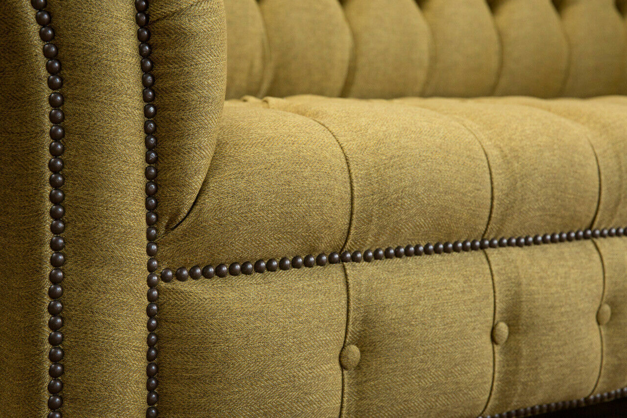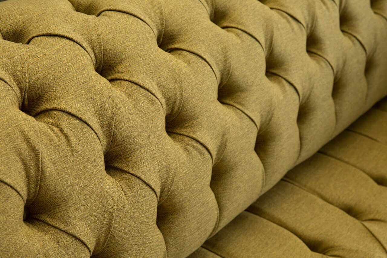 Genießen Sie den Komfort und Luxus unserer gelben Dreisitzer-Couch! Das Design-Sofa bietet nicht nur eine hohe Qualität, sondern auch eine Vielzahl von Optionen, um Ihren persönlichen Stil widerzuspiegeln. Mit Maßen von ca. 225 x 79 x 98 cm (L x H x T) ist dieses Sofa perfekt für Ihr Wohnzimmer. Mit einer Sitzhöhe von ca. 42 cm und einer Sitztiefe von ca. 64 cm bietet es Ihnen den idealen Platz zum Entspannen. Wählen Sie aus einer Vielzahl von Farbvariationen, darunter Taubengrau, Sonnengelb, Blassgrün und viele mehr. Das Material besteht aus hochwertigem Textil, optional auch in Premium Kunstleder, Echtleder aus Italien oder Samtstoff erhältlich. Unsere exklusive Magic Home-Beschichtung macht den Stoff fleckenabweisend. Der Korpus der Couch besteht aus einem stabilen Holzgestell mit einem Unterfederungssystem aus Federkern. Entscheiden Sie sich für zusätzliche luxuriöse Details wie Kristallsteine oder echte Swarovski Kristalle, um Ihrer Couch das gewisse Etwas zu verleihen. Bringen Sie Stil und Eleganz in Ihr Zuhause mit unserer gelben Dreisitzer-Couch. Bestellen Sie jetzt und entspannen Sie in Luxus!