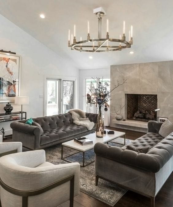 Graue Chesterfield Luxus Designer Couch Moderner 3-er Sofa