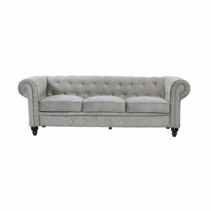 Grauer Chesterfield 3-er Luxus Wohnzimmer Couch Designer Sofa