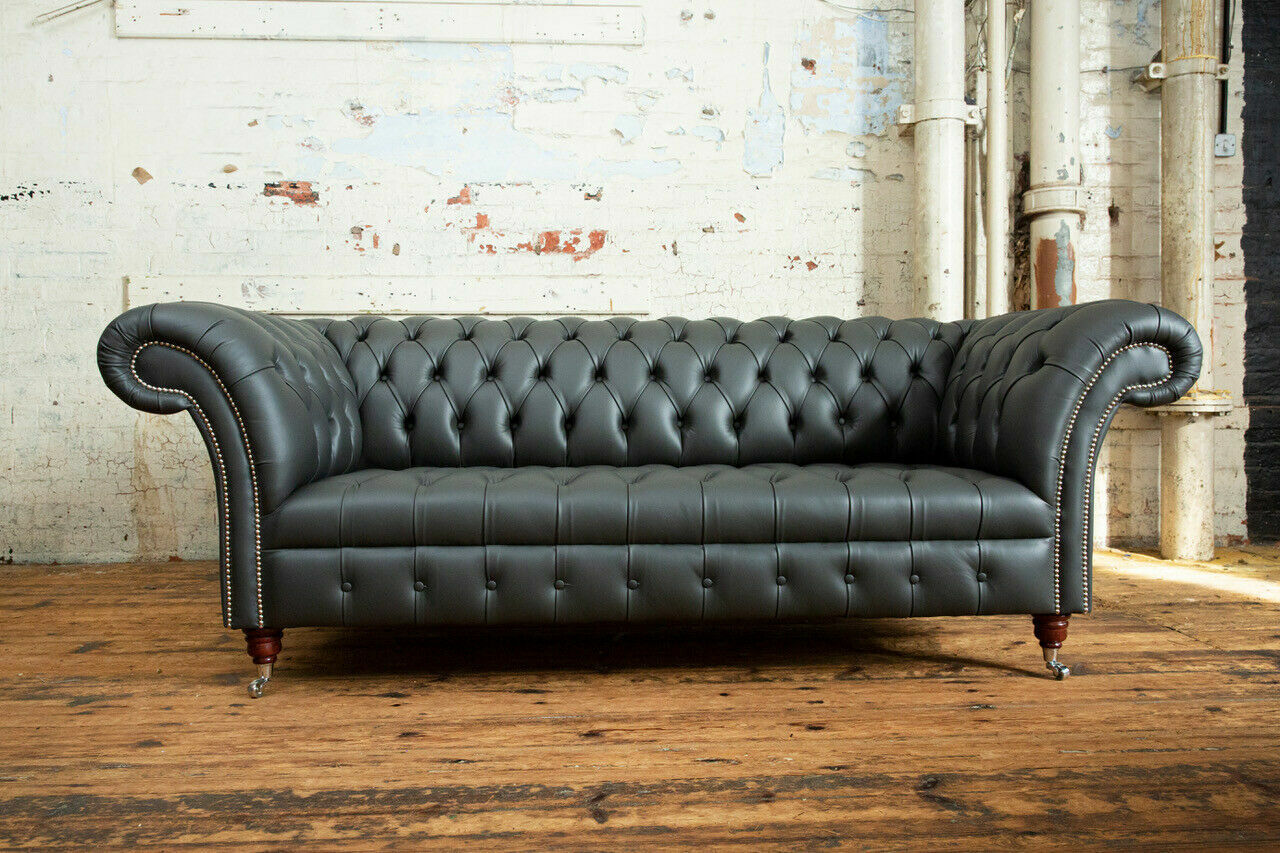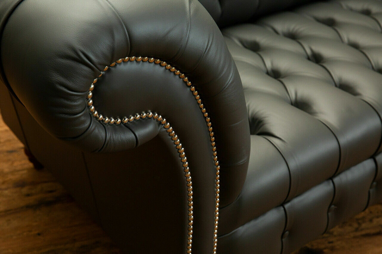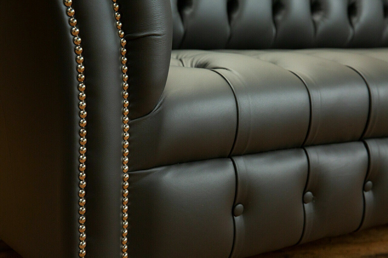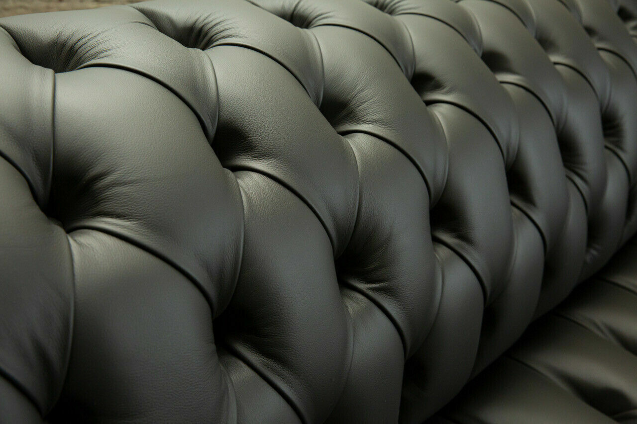 Grauer Chesterfield Leder Dreisitzer Designer 3-er Couch