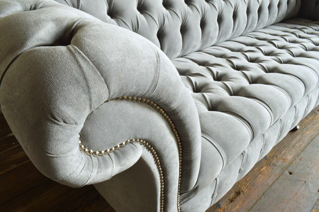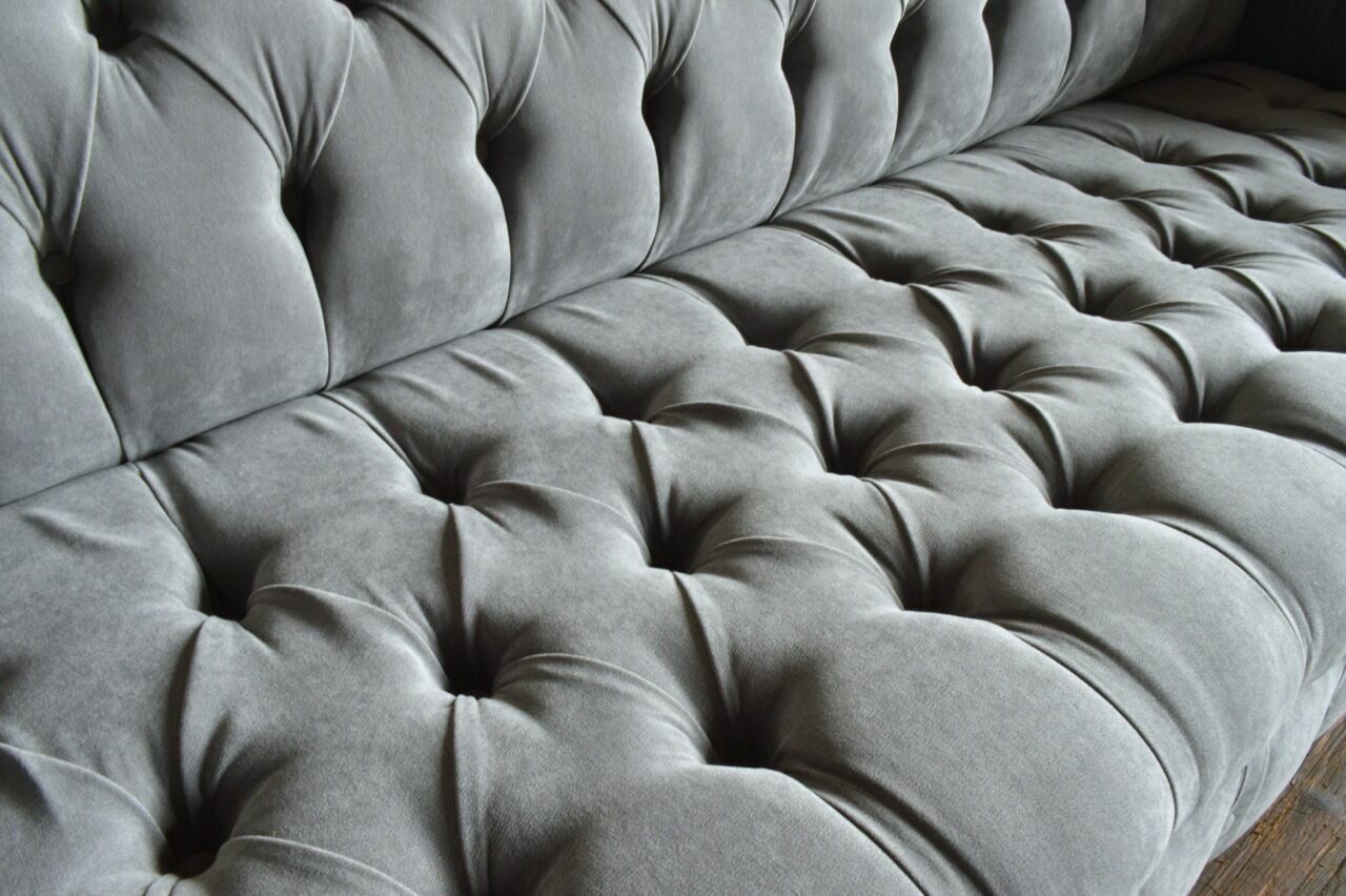 Entdecken Sie das zeitlose Klassische Chesterfield Sofa 4 Sitzer in elegantem Grau! Dieses exklusive Sofa vereint Design, Komfort und Qualität in einem Möbelstück. Gefertigt aus hochwertigem Textil bietet das Sofa mit den Maßen ca. 265 x 98 x 79 cm ausreichend Platz für gemütliche Stunden allein oder mit Ihren Liebsten. Wählen Sie aus einer Vielzahl von Farboptionen, darunter eine breite Palette von Grüntönen, Blautönen und mehr, um das Sofa nach Ihrem Geschmack anzupassen. Zudem haben Sie die Möglichkeit, das Material aus verschiedenen Optionen wie Premium Kunstleder, Echtleder aus Italien oder Premium Samt Stoff zu wählen. Das Chesterfield Sofa verfügt über ein solides Innengestell aus echtem Holz und eine komfortable Federkernpolsterung. Sie können auch gegen einen Aufpreis zwischen einer Vielzahl von hochwertigen Optionen wählen, darunter beispielsweise Kristallsteine oder Magic Home Fleckenabweisender Stoff. Gestalten Sie Ihr Wohnzimmer mit Eleganz und Komfort - bestellen Sie jetzt Ihr Klassisches Chesterfield Sofa 4 Sitzer und lassen Sie sich von seiner zeitlosen Schönheit begeistern!