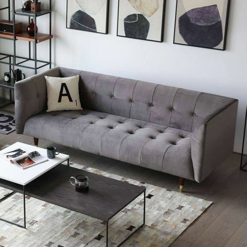 Moderner Grauer Chesterfield 3-Sitzer Luxus Wohnzimmer Couch