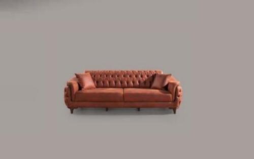 Orange Chesterfield Couch Dreisitzer Sofa Möbel Samt Holz Sitzpolster